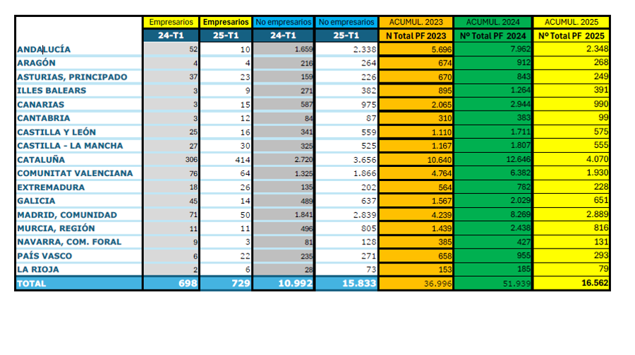 En contraste, los concursos de personas físicas con actividad empresarial han experimentado una ligera disminución en muchas regiones, lo que apunta a una concentración del deterioro económico en el ámbito personal y doméstico, más que en el tejido microempresarial. Si esta dinámica se mantiene en los próximos trimestres, España podría cerrar 2025 superando los 51.939 concursos personales del año pasado, marcando así un nuevo récord y confirmando un cambio estructural en la economía familiar del país.